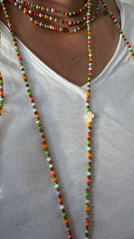 Les sautoirs FAIS PAS TA STEPH s’adaptent à toutes tes envies. Grâce à leur montage sur fil élastique, ils se portent de plusieurs façons : en sautoir (1 tour)pour une allure fluide et élégante, en ras de cou (3 tours)pour un effet structuré, en bracelet manchette (7 tours) pour une touche originale. C’est toi qui choisis, selon ton envie !